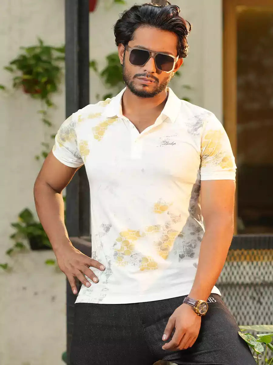 Turn heads with the GeoFade Digital Polo, where contemporary print meets timeless comfort. Made from 100% premium cotton piqué, this polo offers a breathable, lightweight feel ideal for everyday wear. The digitally printed honeycomb pattern fades artfully across the fabric, creating a sleek contrast that adds modern flair. Featuring a classic polo collar, a clean button placket, and a tailored silhouette, this shirt is designed for the man who appreciates casual wear with character. Available in Jet Black and Crisp White for versatile styling options.