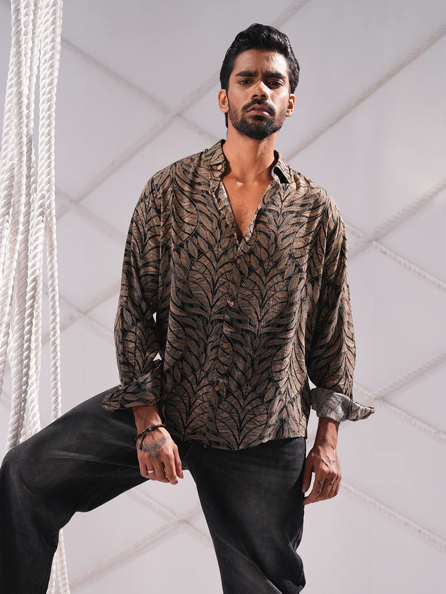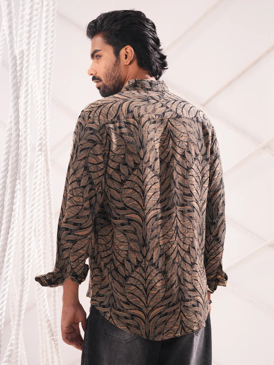 Elevate your wardrobe with this Leaf Weave Jacquard Shirt, a perfect blend of comfort and craftsmanship. Made from a premium cotton-viscose mix, this shirt showcases a detailed woven leaf pattern that adds depth and character to your look. The lightweight jacquard fabric ensures breathability and a soft hand feel, while the button-down front and regular fit make it a versatile choice for any occasion. Pair it with chinos or tailored trousers for a refined yet relaxed style.