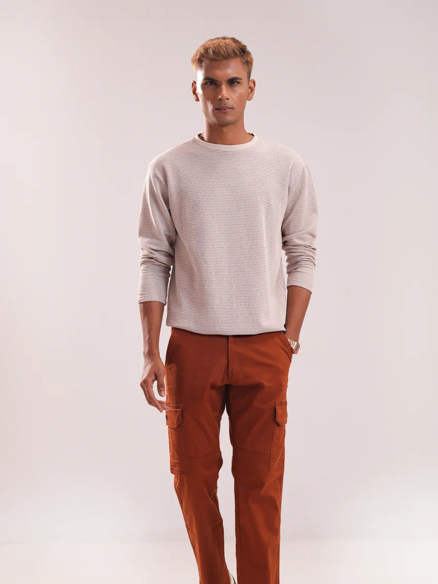Effortless style meets everyday comfort in our Men’s Classic Striped Full Sleeve Crew Neck Tee. Featuring subtle horizontal grey stripes over a soft beige base, this tee is perfect for layering or wearing solo. The cotton offers breathable comfort with a smooth texture that holds its shape wash after wash. Designed with a regular fit and ribbed neckline, it’s ideal for cool days or casual evenings. Pair it with jeans or chinos for an easy, refined off-duty look..