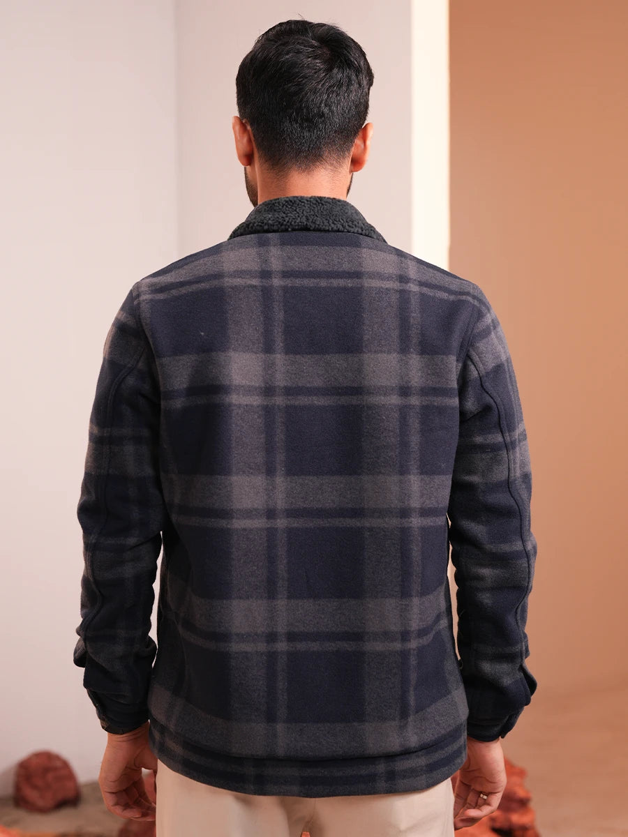 Stay warm and effortlessly stylish with this Men’s Wintercheck Fleece Jacket. Designed with a rich maroon and slate blue plaid pattern, this jacket blends modern streetwear appeal with winter-ready functionality.