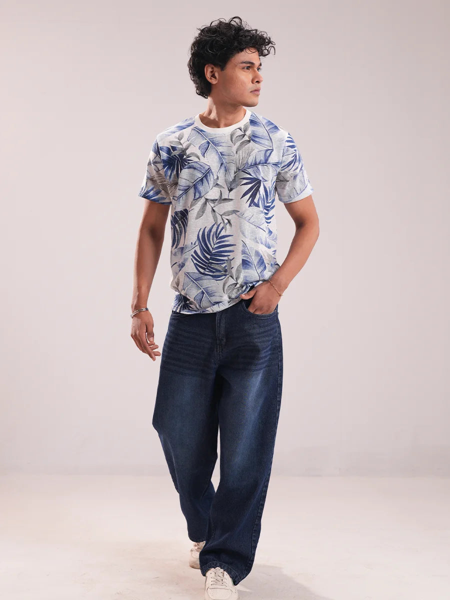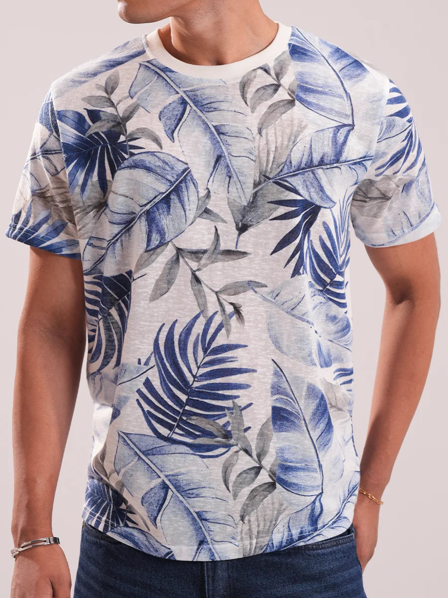 Drift into comfort and style with our Ocean Breeze Botanical Drop Shoulder Tee. Inspired by the calming hues of the sea and nature, this tee features a beautiful watercolor leaf pattern in tones of blue, beige, and soft green, printed on a creamy base. The airy and artistic design evokes a laid-back vibe perfect for casual days, resort wear, or weekend lounging.