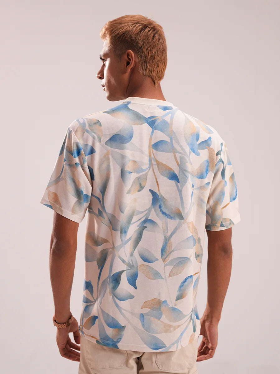 Drift into comfort and style with our Ocean Breeze Botanical Drop Shoulder Tee. Inspired by the calming hues of the sea and nature, this tee features a beautiful watercolor leaf pattern in tones of blue, beige, and soft green, printed on a creamy base. The airy and artistic design evokes a laid-back vibe perfect for casual days, resort wear, or weekend lounging.