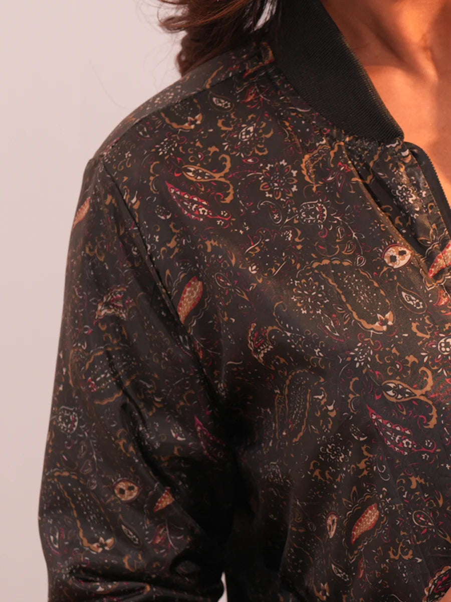 Stay on-trend with this essential bomber jacket, designed for a modern, relaxed fit that hits at the hip. Crafted from a durable and lightweight fabric, it features a front zip closure, a classic stand collar, and ribbed cuffs and hem for a timeless silhouette. The soft blush pink serves as a beautiful backdrop for the intricate floral print, adding a vibrant pop of color to any outfit. Pair it effortlessly with your favorite high-waisted jeans, a basic tee, or a simple dress for a fashion-forward look. This fully-lined, everyday casual piece is perfect for layering during spring and autumn.